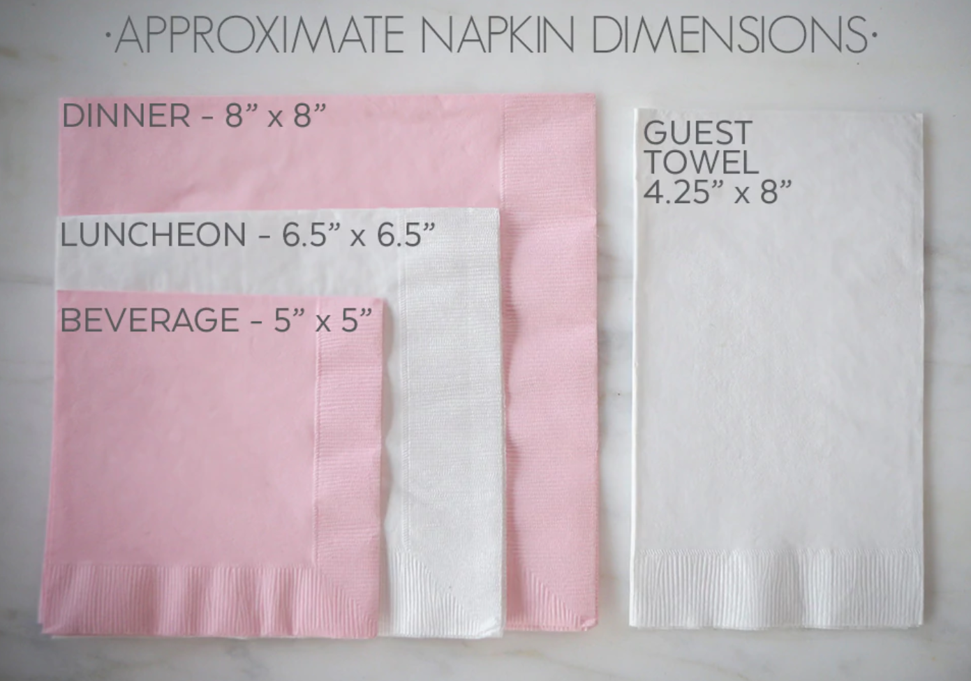 • Most Colors available in Cocktail, Luncheon, Dinner & Guest Towel