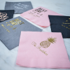 Personalized 3-Ply napkins and guest towels are perfect for any occasion. These napkins are the better party store type napkins constructed from soft 3-ply premium material with a coin embossed edge. These come in a wide variety of colors and ink colors may be matched to napkin color to use on cups, coasters, stir sticks or any of our imprintable items.