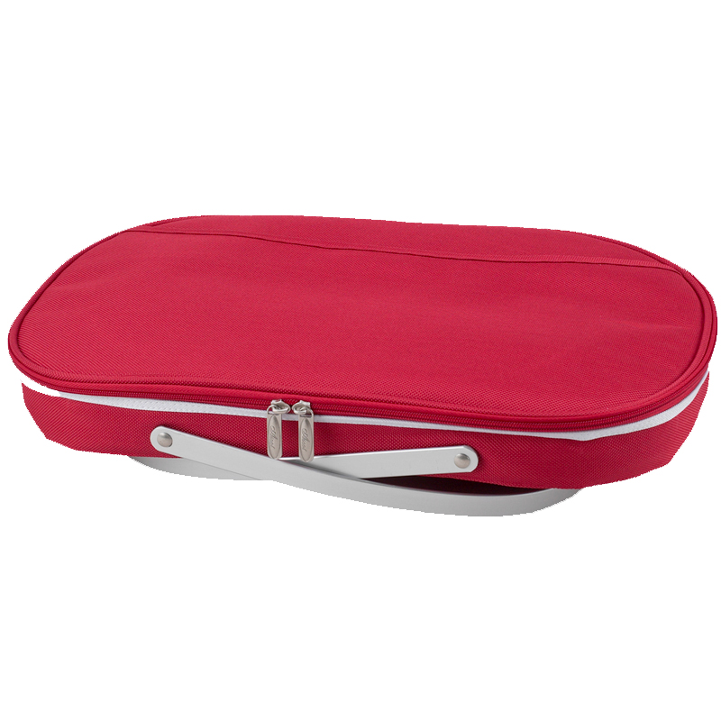 Thermal shield™ insulated picnic basket to keep food and drinks at the perfect temperature for hours. Constructed with a sewn in lightweight aluminum frame and handles. Leak proof, with a food safe lining. Zippered lid, padded hand grip, and front pocket. Folds flat for storage and has permanent built in side supports (no installation required) to hold empty cooler upright for easy loading. Patent pending. Designed in the USA. Lifetime warranty. |